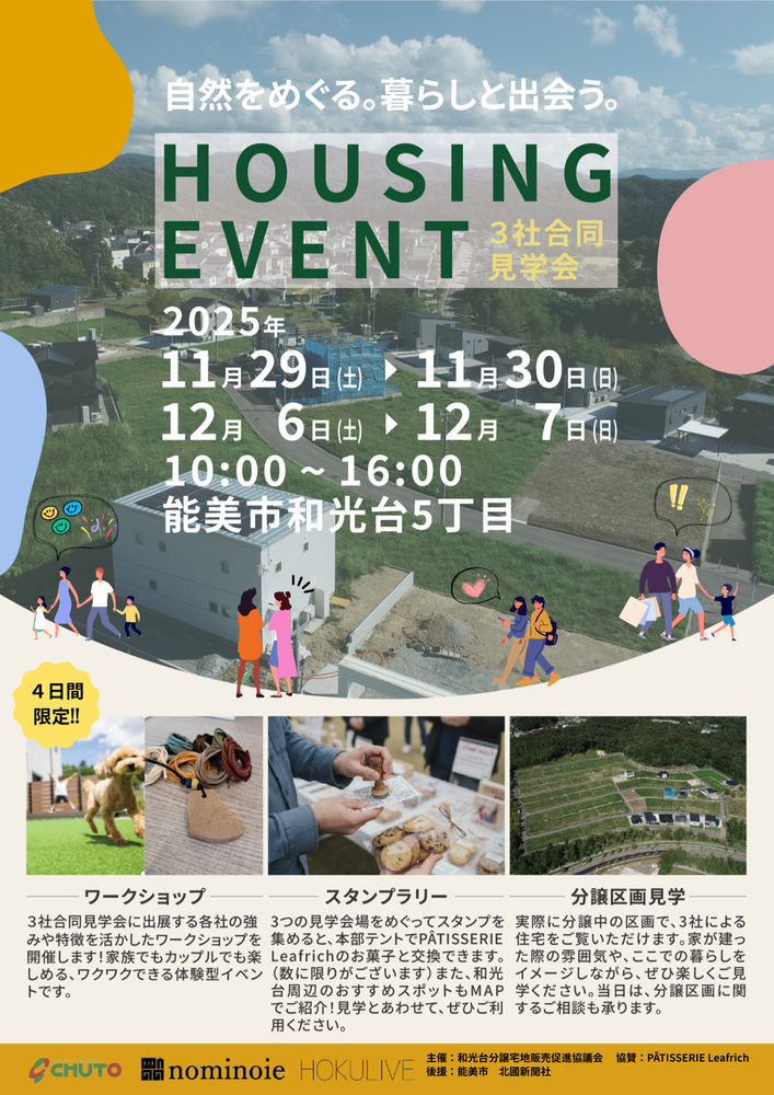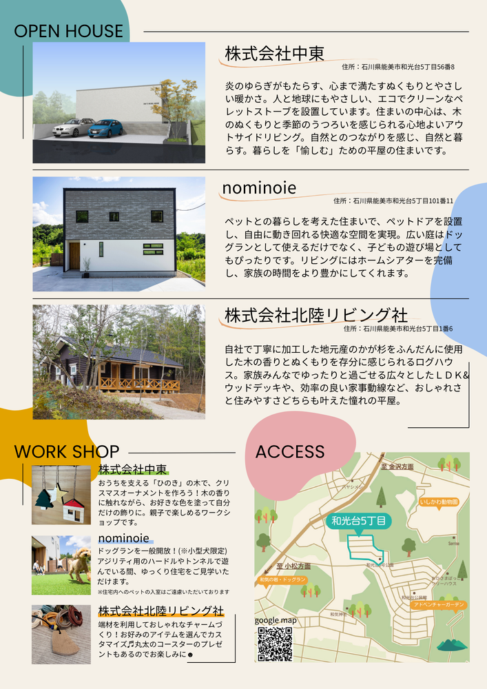 3つのお家を同時に見られるチャンスです♪中東会場ではペレットストーブ・バレルサウナをご体感頂けます。クリスマスオーナメント作りのワークショップも開催しますのでぜひ遊びに来てください!