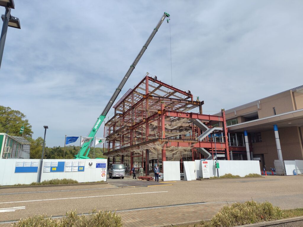 「能美市本庁舎防災・機能強化施設」の建て方が始まりました。安全第一に工事を進めてまいります。